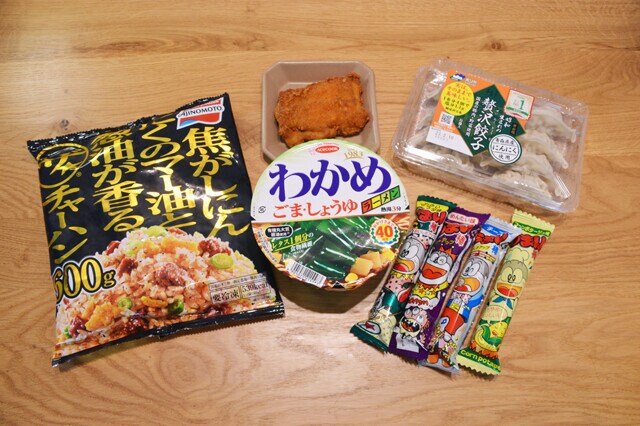 チャーハンと餃子をフライパンで炒め、わかめラーメンを入れ、さらにファミチキと削ったうまい棒をトッピング。見た目は残り物を廃棄する寸前にしか見えないが、計算され尽くしたかのようにスープに奥行きが生まれ激ウマ!