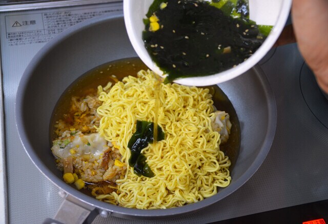 野島 いや、でも米の食感はさておき、チャーハン、餃子、ファミチキの味がわかめラーメンのスープに溶け込んだら味の深みが生まれるのは間違いなし。これこそバカレシピの神髄「見た目は悪いけど味は激ウマ」を踏襲した内容になっているかもしれません!