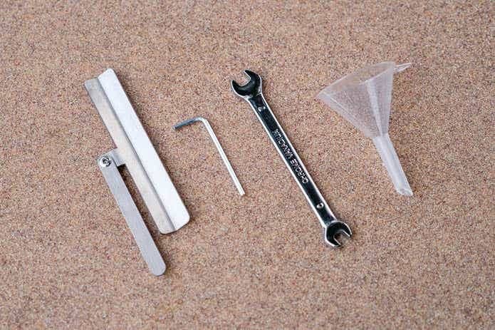 付属のジョウゴを使ってパラフィンオイルを注ぎます。