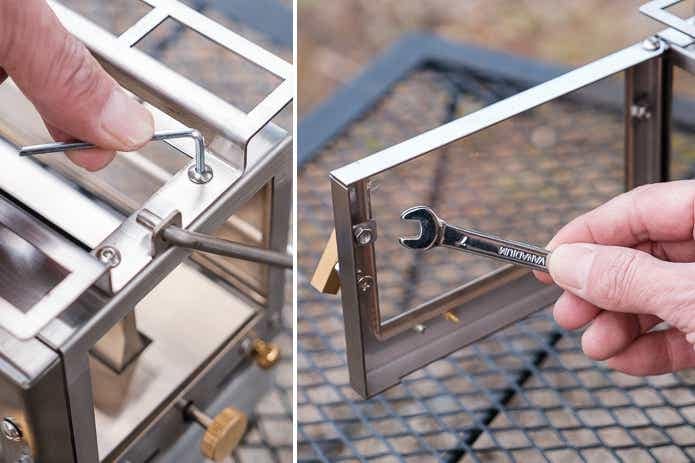 そして六角レンチとスパナ。これらは汚れを除去するメンテナンスで役立つでしょう。レンチではゴトクやドアを取り外すことができ、スパナを使えば耐熱ガラスを外すことができます。