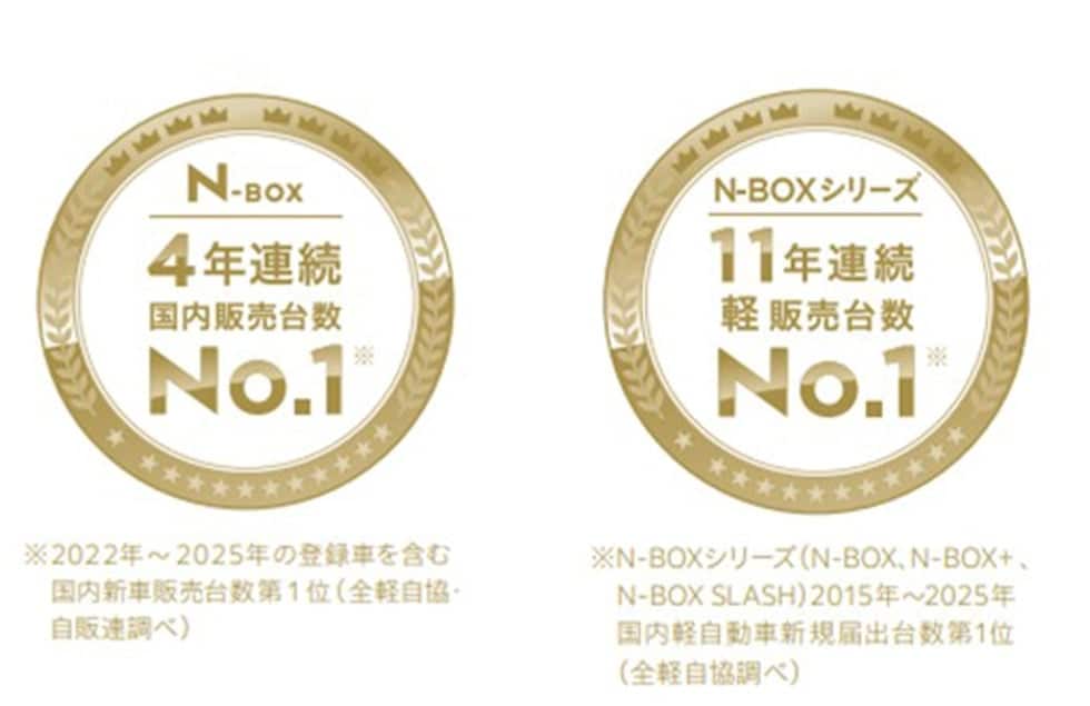 本田技研工業株式会社は、軽自動車「N-BOX」の2025年暦年(1月〜12月)における販売台数が201,354台となり、新車販売台数(登録車含む)において4年連続、軽四輪車部門では11年連続の年間首位を獲得したと発表した。