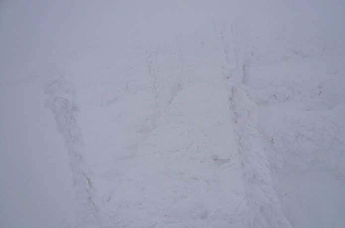 表面の雪は固まっていませんので、スコップでどけて捨ててしまいます。踏めば固まるような雪質であれば、踏んで固めてしまっても構いません。