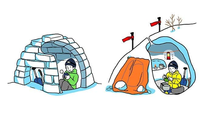 イラスト作成:はらぺこworks(左/イグルー、右/横穴式雪洞)