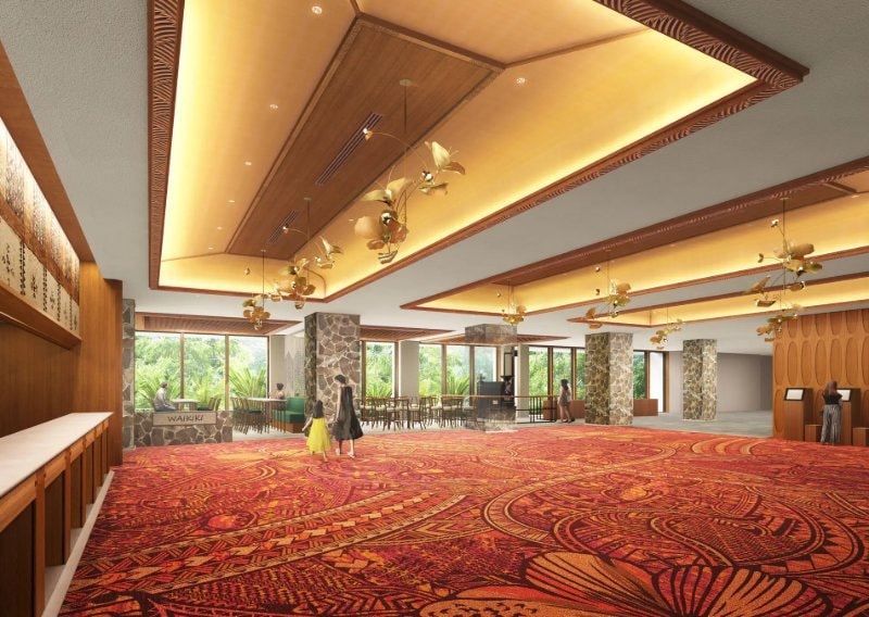ロビーは2025年12月5日にリニューアルされ、床やフロントにポリネシアの伝統文化の一つとされる「タパ(樹皮布)」の文様を取り入れ、創業当時の雰囲気を残しつつ、現代的な装飾が加えられています。
