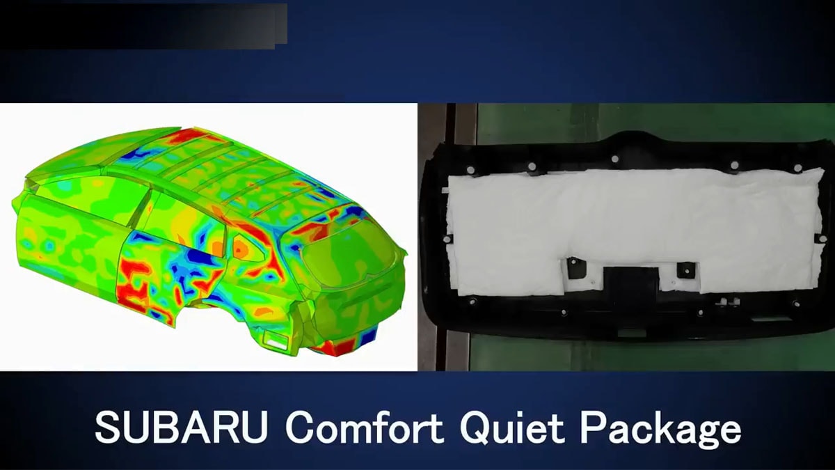 コンフォート・クワイエット・パッケージ:レヴォーグ向けのパッケージ。制振材、吸音材をキャビンの各所に追加することで、より静粛な室内とすることができる。