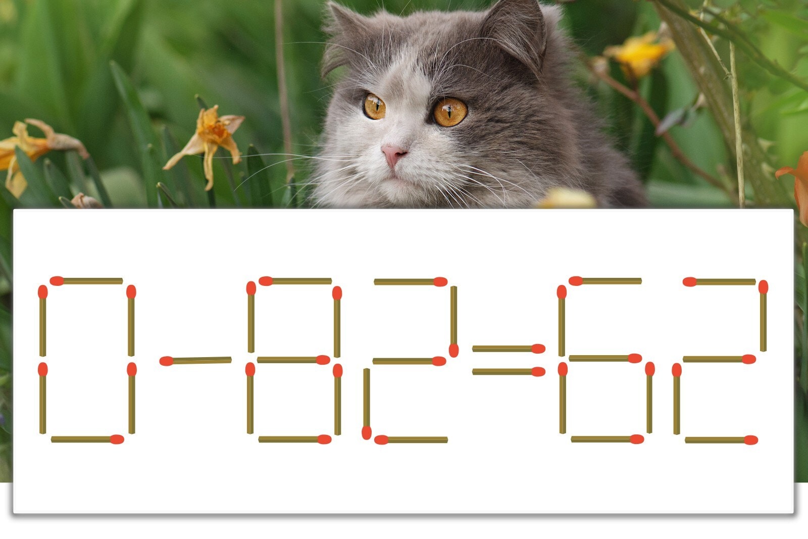 「8」を別の数字に変化させると答えが導き出せます。「8」のマッチ棒を1本移動して、「-」を「+」にしてみましょう。すると、「0+62=62」が成立します。