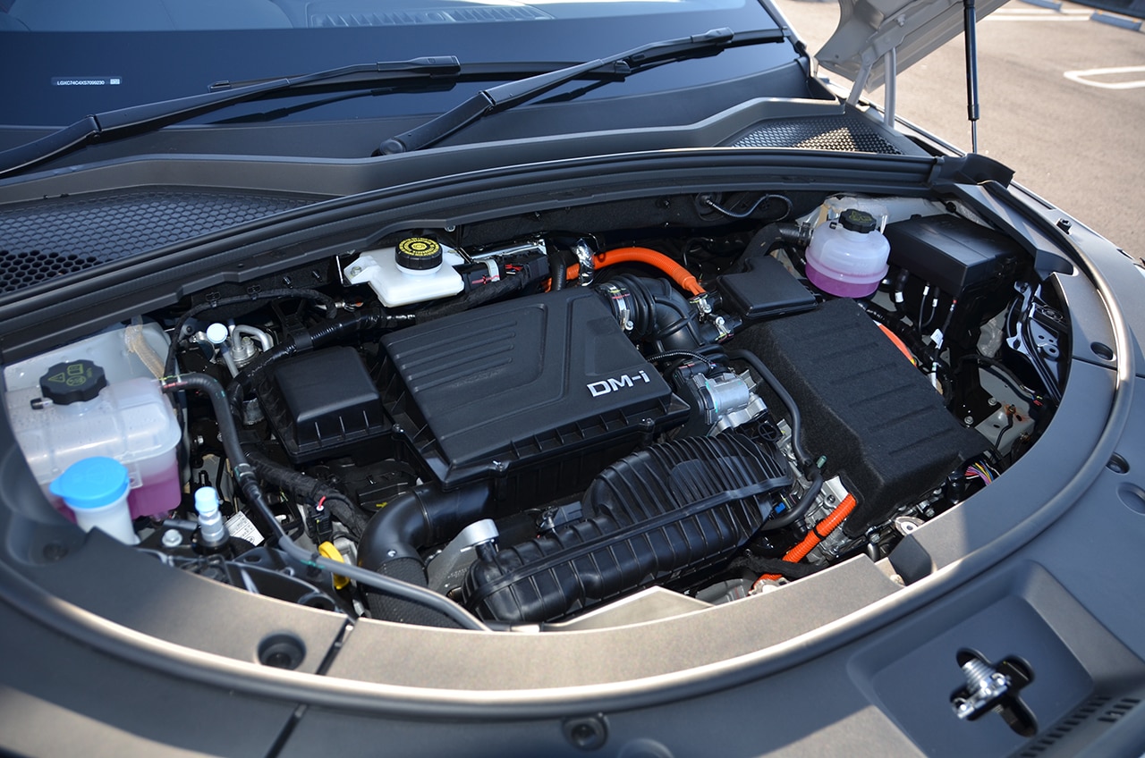 搭載するエンジンは1.5LのNA 直列4気筒エンジンで、PHEV専用に開発した「BYD476QC」型を搭載している。充電をメインに設計し圧縮比15.5の高圧縮に冷却EGRを投入したアトキンソンサイクル運転する高効率エンジンだ。このあと投入されるAWDには、このエンジンにターボを追加した「BYD472ZQB」型を搭載してくる。
