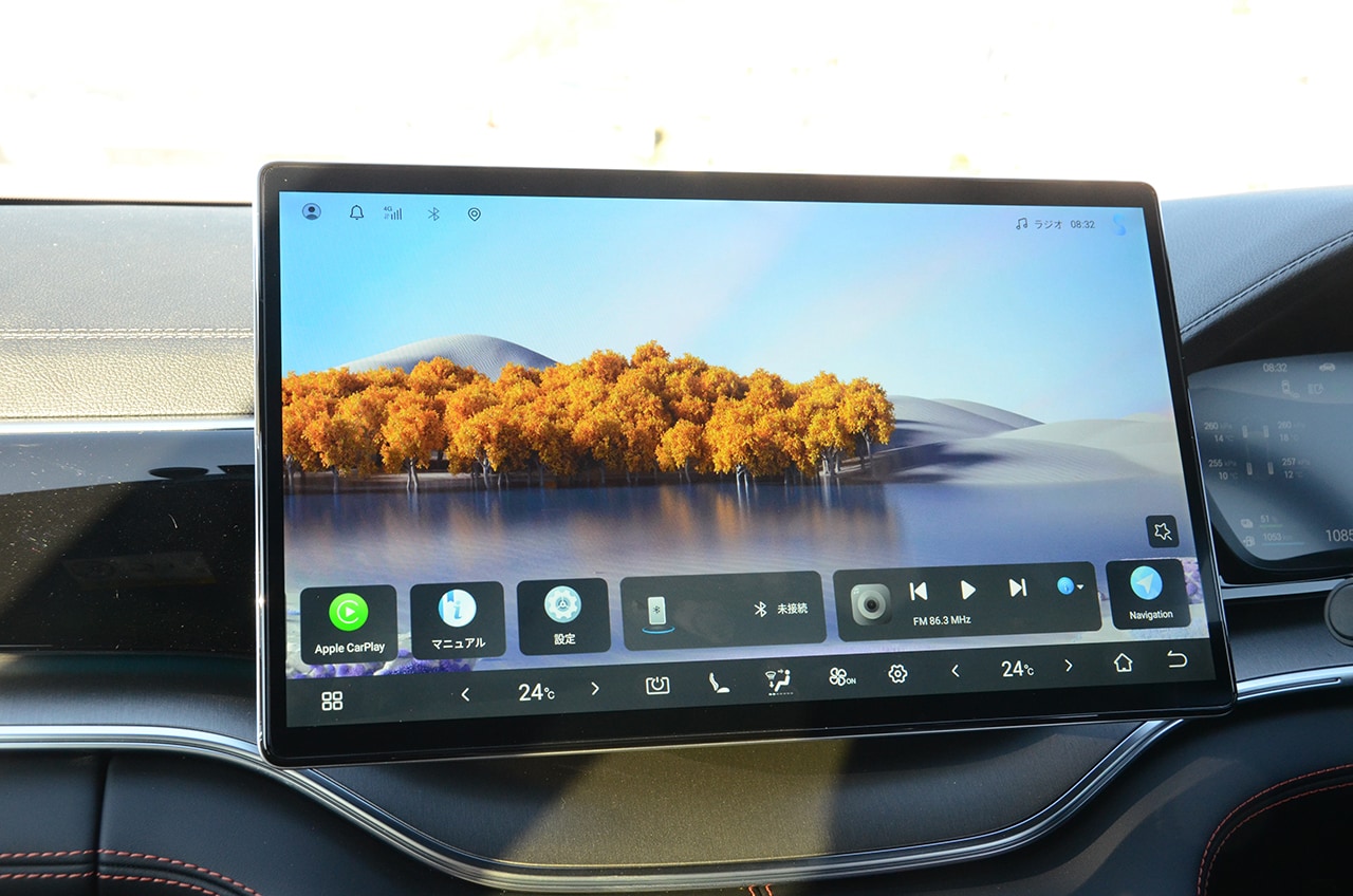 インテリアでは15.6インチもあるモニターが目を惹く。もはやタブレットサイズを超え、ノートPCサイズの画面の大きさなので操作系に不自由はないのだが、階層構造やインターフェイスの課題は残り、指が迷子になることもしばしば。これもオーナーになれば慣れてしまうので、気になることではないかもしれないが、通常使わない機能を使う時は、やはり探すという行為が必要になる。
