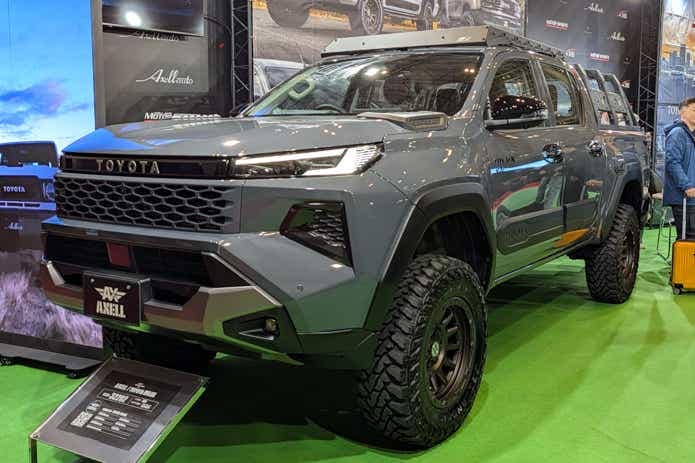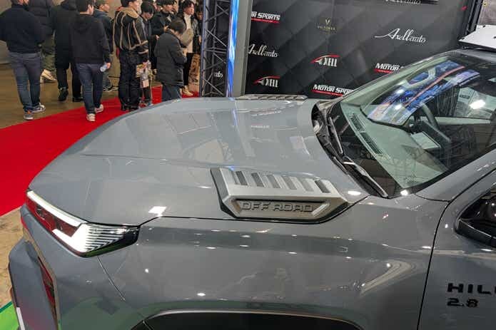2026年年央頃(5月末頃が有力)に発売予定と公式発表されている新型ハイラックスが、一足先にカスタムされて出展されました。
