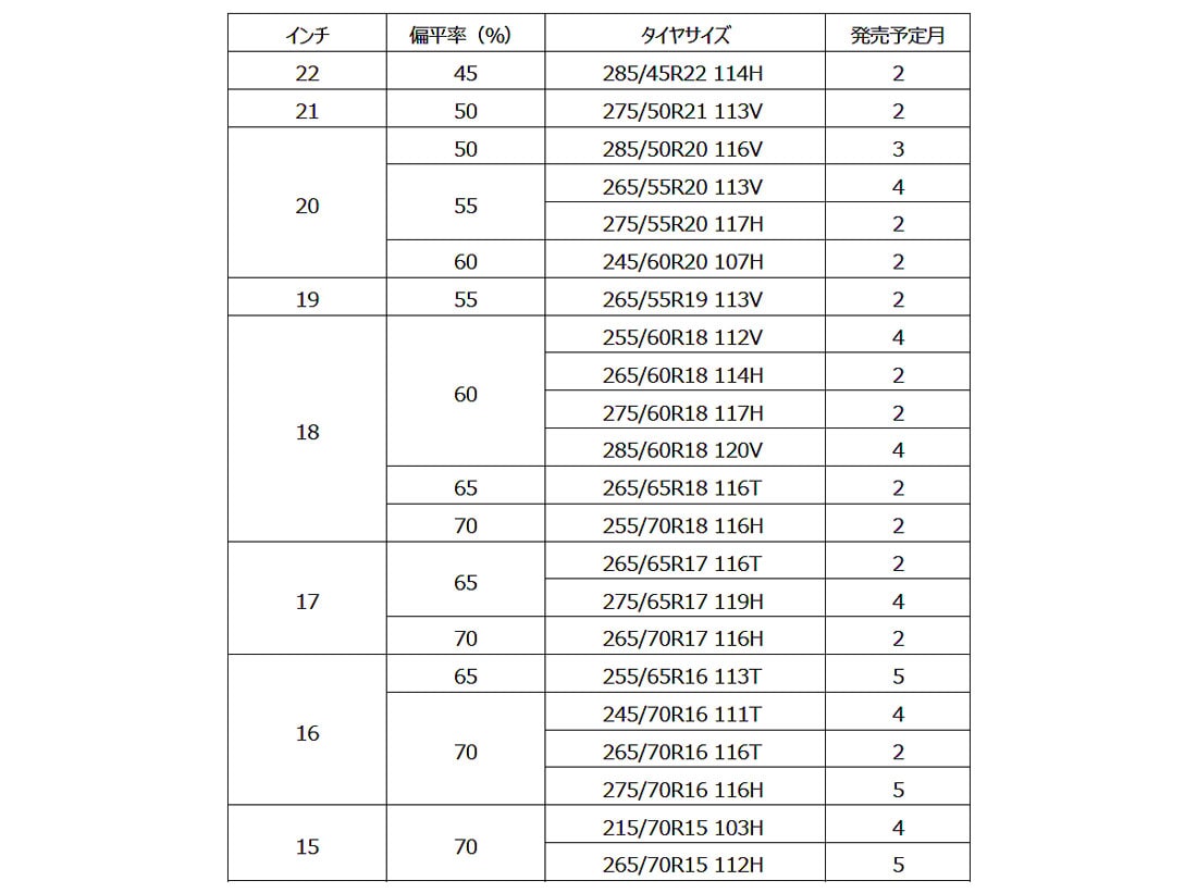 横浜ゴムは2026年1月9日、オンロード性能とデザイン性を高めた大型SUV、ピックアップトラック向けハイウェイテレーンタイヤ「GEOLANDAR(ジオランダー) H/T4」を2026年2月から発売すると発表した。 発売サイズは2月に発売する12サイズを皮切りに、5月までに計22サイズへと順次拡大させるとしている。 「GEOLANDAR H/T4」は従来品「GEOLANDAR H/T G056」の後継モデルで1997年に販売開始した「GEOLANDAR H/T」の第4世代商品となる。 新たに「ビッグセンターブロック」や「高剛性ショルダーブロック」などを投入した専用トレッドパターンを開発するとともに、独自配合技術によりウェットグリップ性能、耐摩耗性能、低燃費性能を高次元でバランスさせたコンパウンドを採用。 これにより、大型SUV、ピックアップトラック用タイヤに相応しい耐摩耗性能は維持しながら、ハイウェイテレーンタイヤに求められるウェットグリップ性能などの安全性や快適性能、低燃費性能をさらにレベルアップしている。また、車外通過騒音に関する国際的な業界自主基準(低車外音タイヤ)を満たす優れた静粛性も実現している。 […]