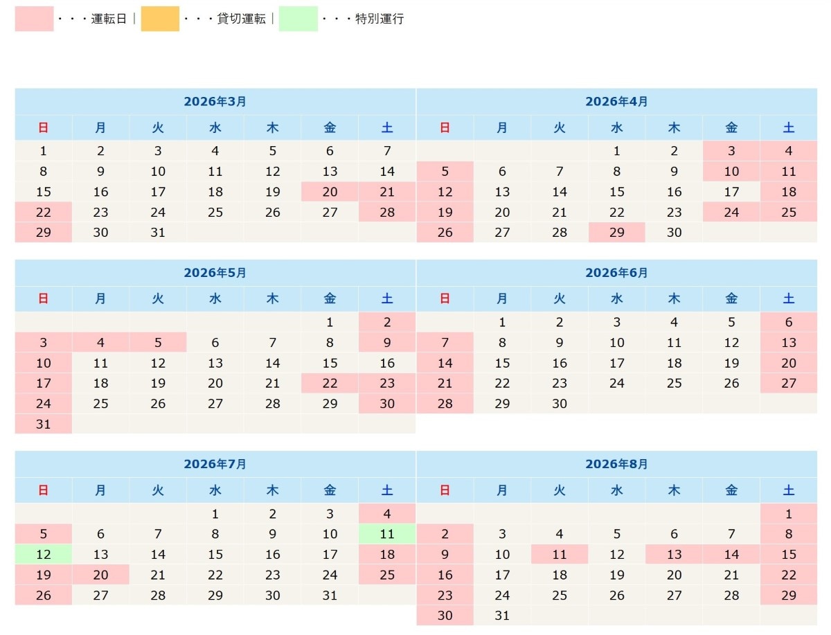 運行期間:2026年3月20日(金・祝)~12月6日(日)の土日祝日中心