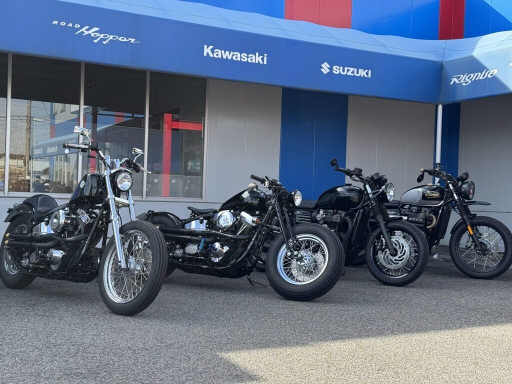 今回のミーティングはプロト直営のバイクショップ、リグニスも協賛。ハーレーカスタムコンプリート車両ZDCやMotoneカスタムのトライアンフ車両も展示。