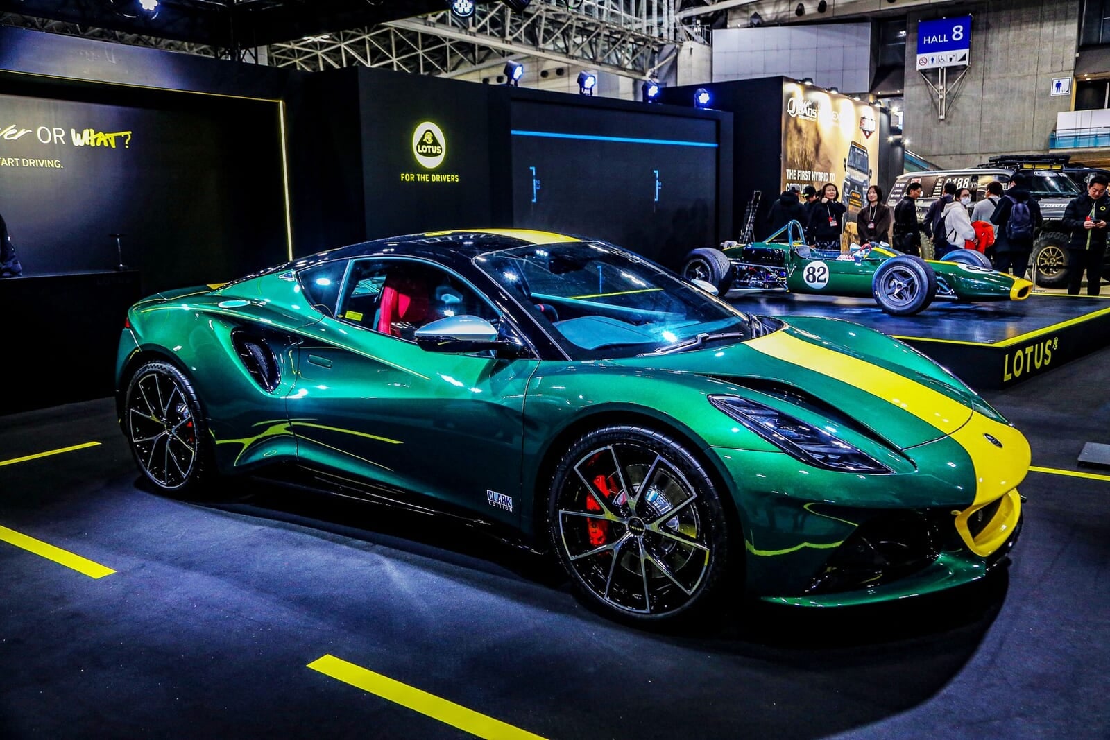 まず、驚くべき事実をお伝えしよう。この車、昨日の今日でここにいる。比喩ではない。本当に昨日、日本に到着し、通関を抜け、そのまま幕張メッセに運び込まれたのだ。展示のライティング調整などしている暇などなかっただろう。その「泥縄」感がいかにも英国的であり、また、それほどまでにロータスジャパンが日本のファンに見せたかった一台だという証拠でもある。
