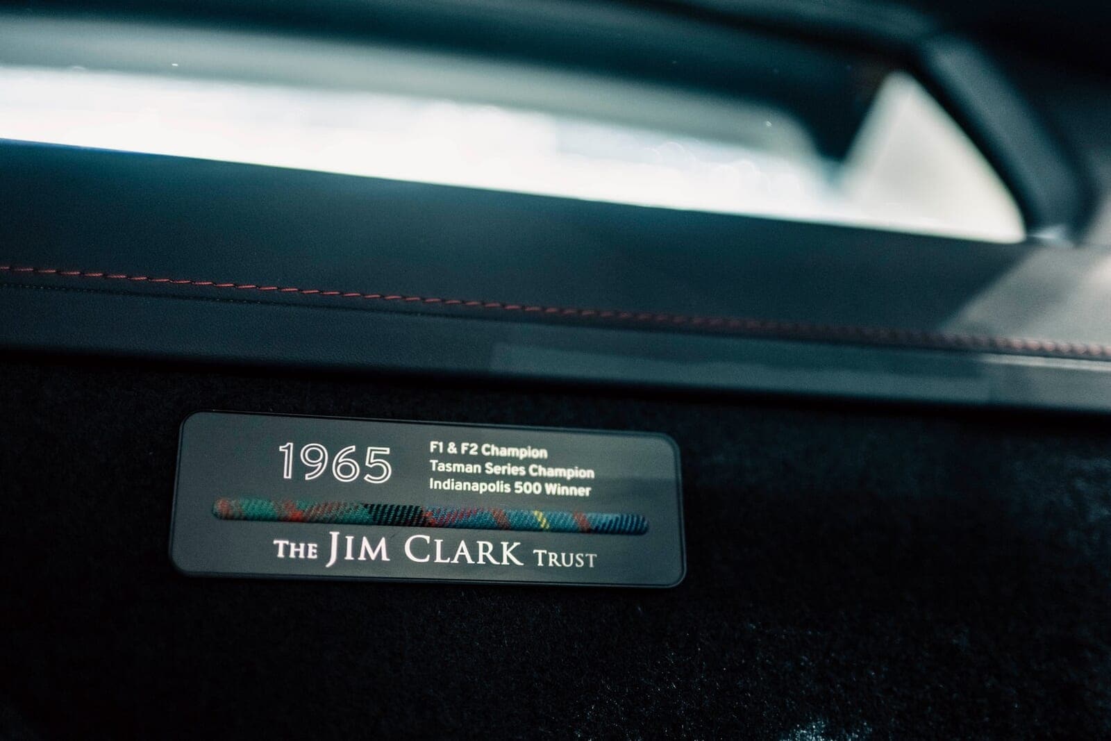 寺嶋氏: ええ、そこが最大のこだわりです。モチーフとなったインディ500優勝車「タイプ38」のシートが赤だったことに由来しています。ドライバーズシートだけを赤にし、シフトノブも当時を彷彿とさせるウッド仕様にしました。さらに、シート間のプレートには1965年に勝利した全レースのリストが刻まれています。まさにジム・クラークになりきるためのコックピットです。