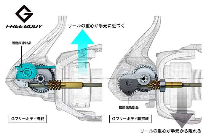 リールの重心が手元側に近づけたGフリーボディを採用。