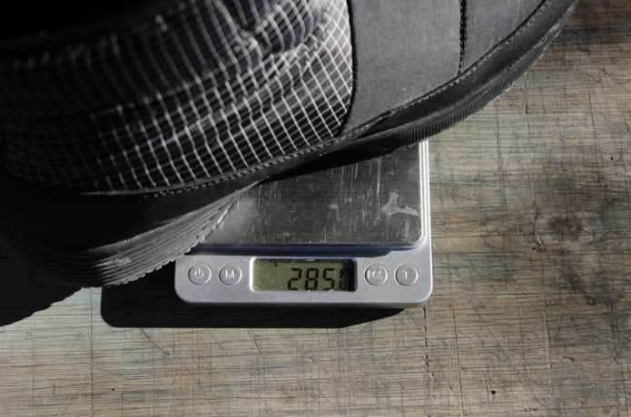 重さは、片足約285g。実際に履くと、見た目以上に軽い!
