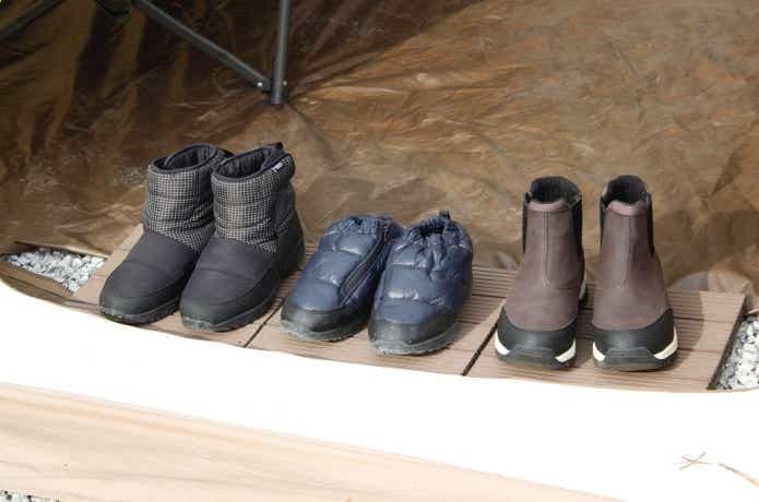 これら3足を履きまわした結果、個人的に冬キャンプ(積雪なし)で履くなら「防寒パフィーシューズ」がナンバーワンという結論に。