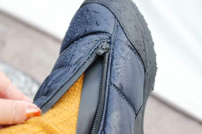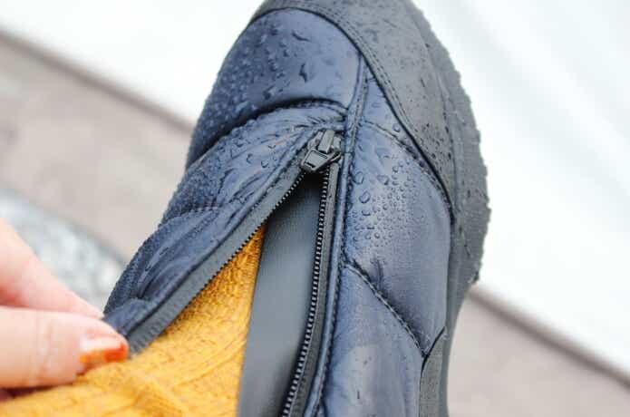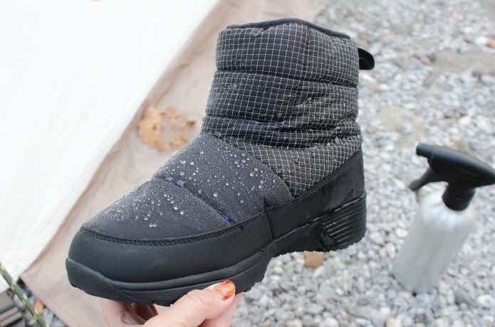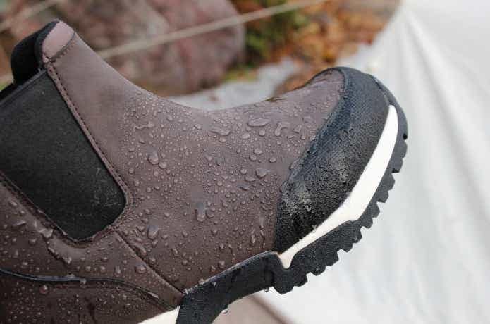 ブーツの表面は高撥水加工がされていて、水をつるんと弾きます。ちょっとした雨や雪なら、気にせず履けそうですね。