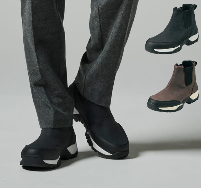 そもそもサイドゴアタイプは紐を使わない構造のため、甲まわりに隙間ができにくく、外気が入りにくいのが特長。見た目以上に防寒性があります。