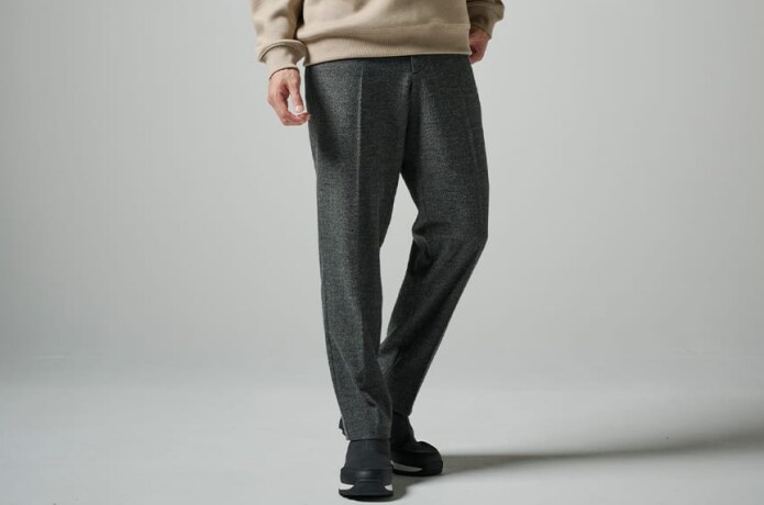 というのも、安価なゴムだと履いているうちにビヨ〜ンと伸びてシルエットが崩れてしまうことがありますが、そうした劣化が起こりにくいゴムなんだとか。