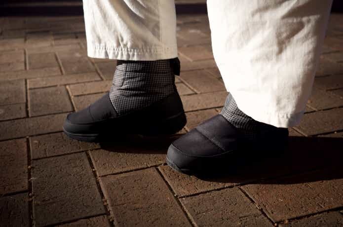 中わた入り、滑りにくいソールと機能にこだわりがありながら、片足約230g。これくらいの軽さなら、サブシューズとして持ち歩いてもストレスがなさそう。