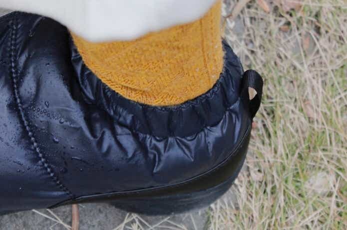履き口にはゴムが通っていて、デザインとしても冷気が入りにくい仕様。