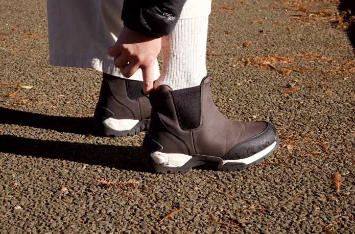 冒頭でも書いたとおり、赤外線で発熱するハイテクな中わたが封入されているので、足元はじんわりとあたたか。ヌプシブーツほどの強力な保温性はありませんが、冷え込む日でも心地よいぬくもりを感じました。