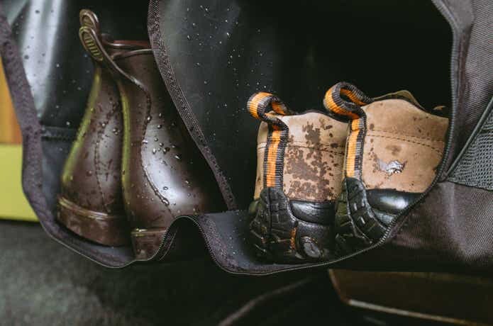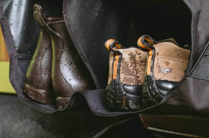 内側は防水コーティング仕様。これにより、泥付きや雨で濡れた靴も、そのまま気兼ねなく放り込めます。