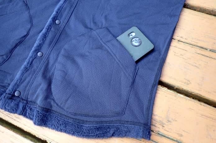 スマートフォンなど小物の収納に便利なサイドポケットも備え、家でも外でも便利な1枚。