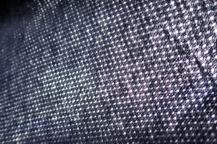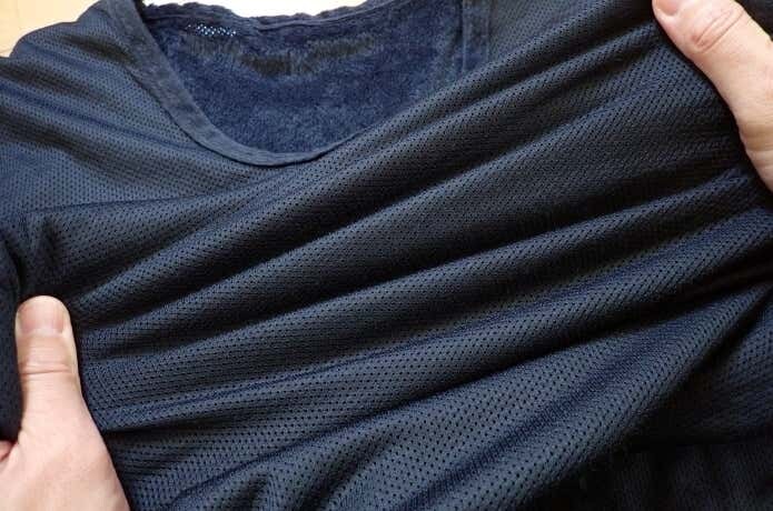 また、生地は光が透けるほど薄く、メッシュ面との相乗効果で通気性がとても高いのもポイント。運動中の熱をうまく逃がし、蒸れを感じにくい構造です。