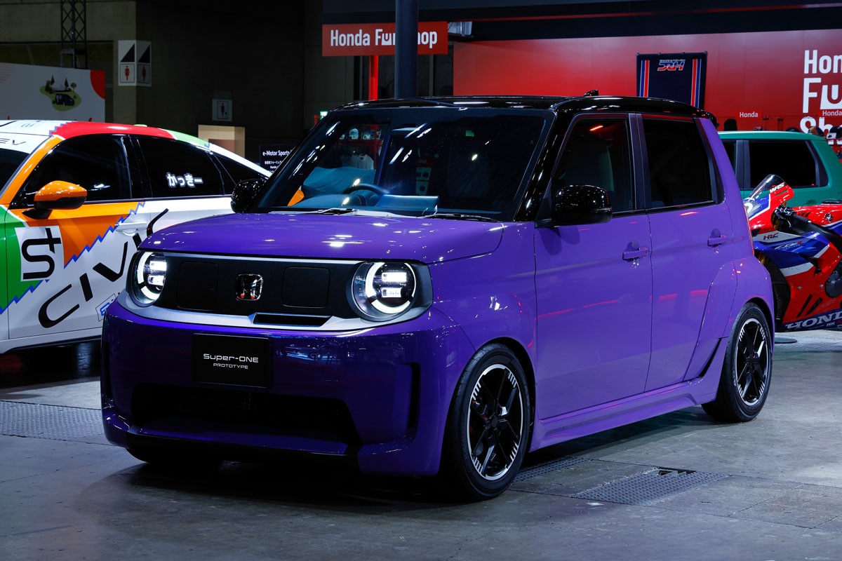 Super-ONE Prototype:2025年のジャパンモビリティショーで世界初公開したEVのコンパクト・スポーツのSuper-ONE Prototypeは、日常の走行でも刺激的で気持ちの高ぶる走りへ進化させることを目指した軽自動車ベースの小型EVで、今回、新たに市販予定カラーを採用した車両を展示。