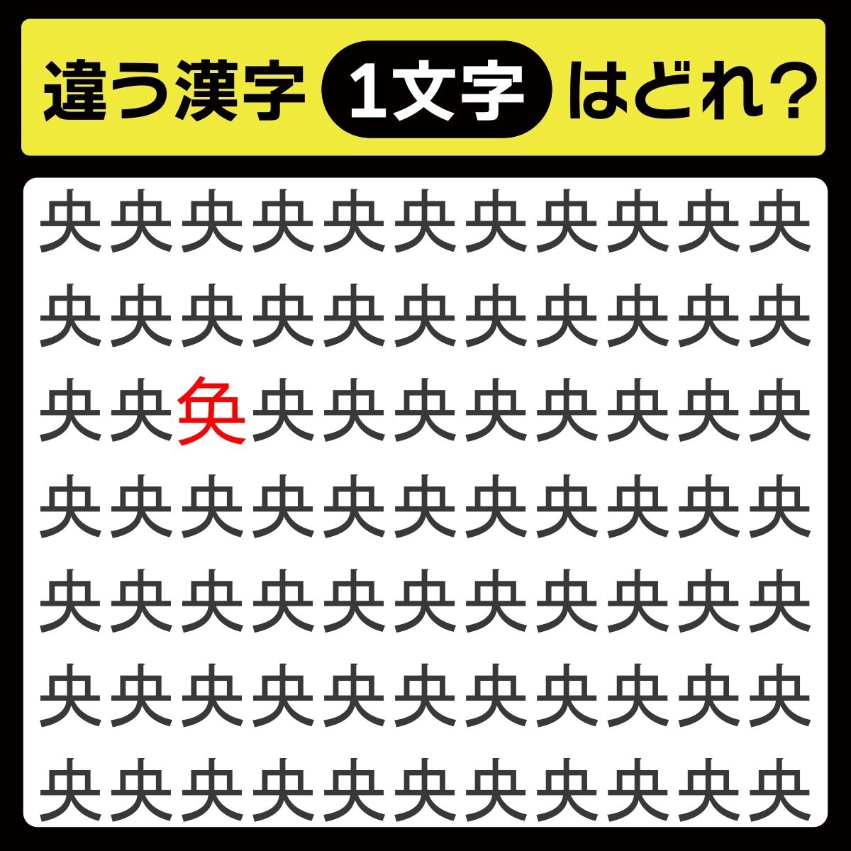 「央の中に隠れてるのは?」漢字間違い探しで脳トレしよう!【毎日脳トレ】【クイズ】
