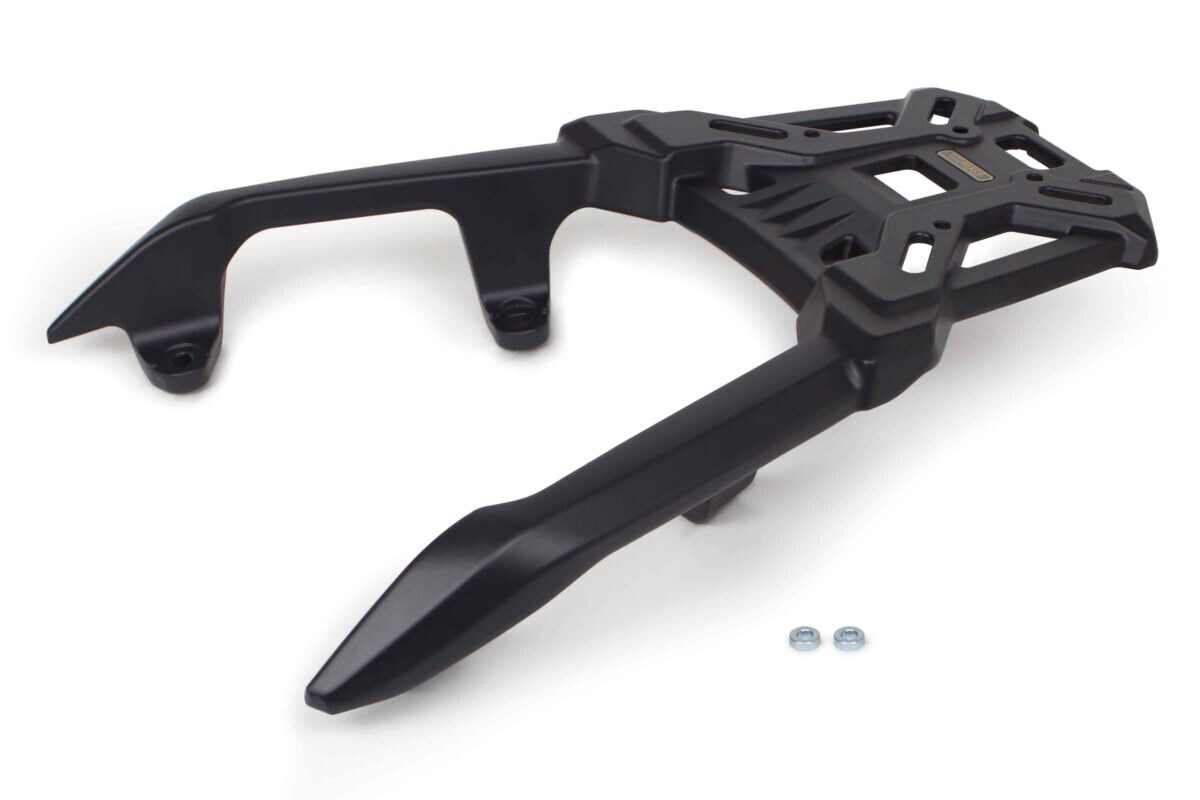 本製品は純正グラブレールをモチーフにデザイン設計を行い、同様の立体成型での製造、表面処理を採用することで、純正スタイルを崩すことなく取り付けが行えます。荷台部も立体成型を生かしたスクエアフォルムデザインを採用している為、ボックスなどを装着しない状態でもスタイルアップとしてご使用いただけます。