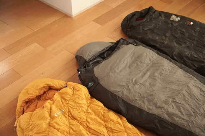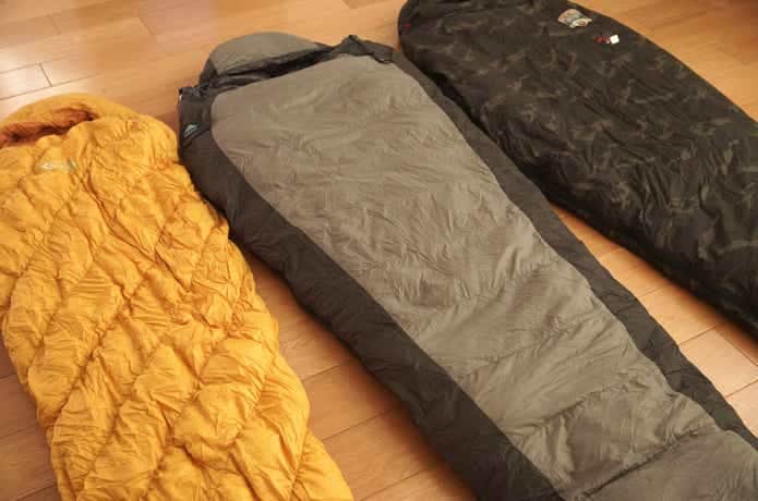 では、ここからは比較検証スタート。スペックは異なりますが、ちょうど筆者はモンベルとナンガの寝袋も持っているので、機能や使い心地を比較してみました。