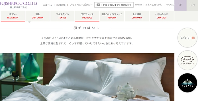 気になった理由はというと、このFUGAKUが羽毛布団メーカーから誕生したブランドであるという点。