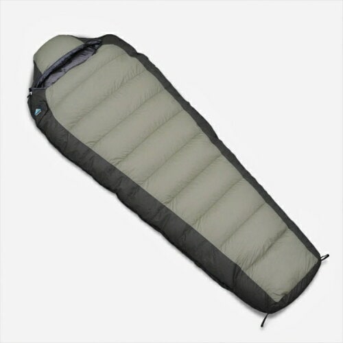 こちらが冬場でも使用可能な850gのダウンを詰め込んだ、F90 SLEEPING BAG / MUMMY 850。形状はオーソドックスなマミー型で、前側と背中側で異なる生地が使われていて切り替えになっているデザインが特徴的。