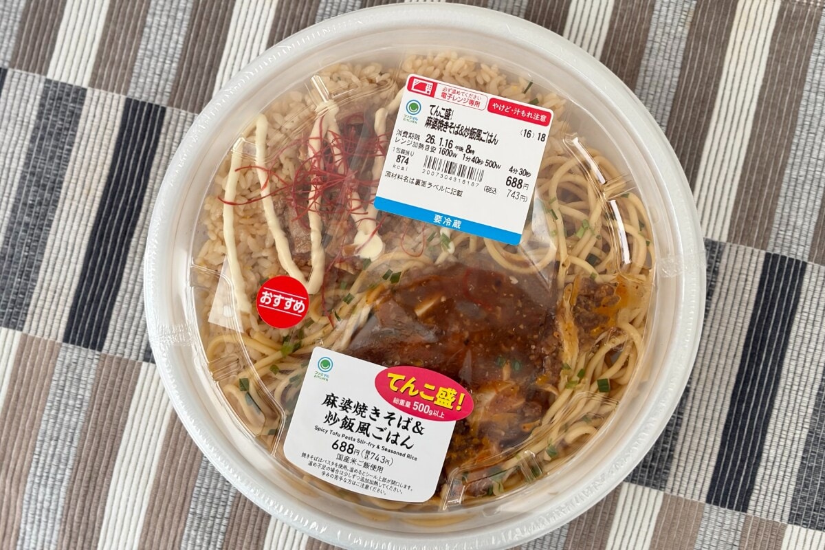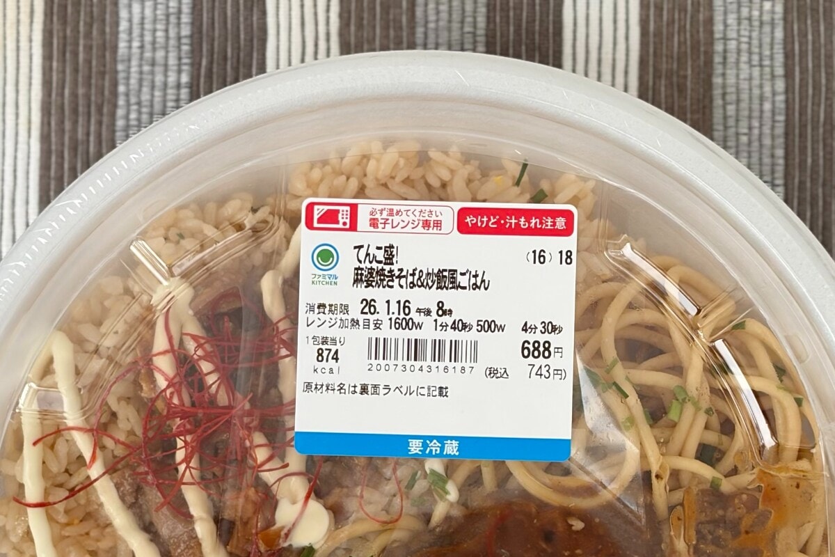 ファミリーマートは2026年1月13日(火)、「てんこ盛!麻婆焼きそば&炒飯風ごはん」(税込743円)を発売しました。