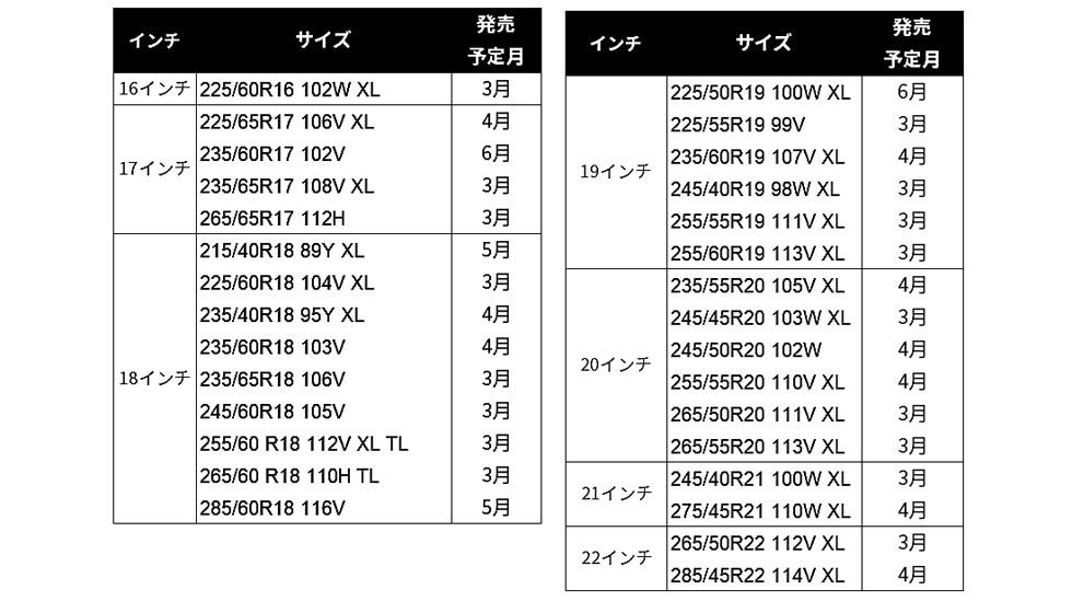 今回のサイズ拡充で、コンパクトカーからSUVまで幅広い車種をカバーすることができるようになっている。