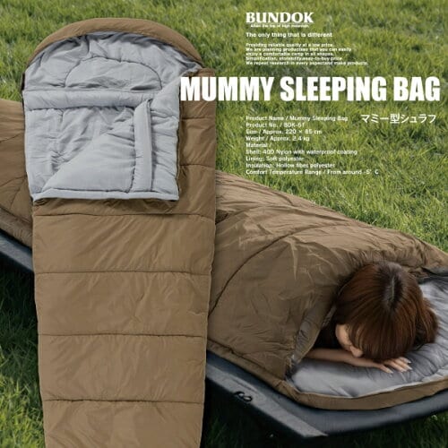 新潟県三条市を拠点とするアウトドアブランド「バンドック」の高コスパモデル。1万円以下という手に取りやすい価格ながら、快適温度は−5℃まで対応します。落ち着いたカーキカラーで、キャンプサイトにもなじみやすいデザイン。