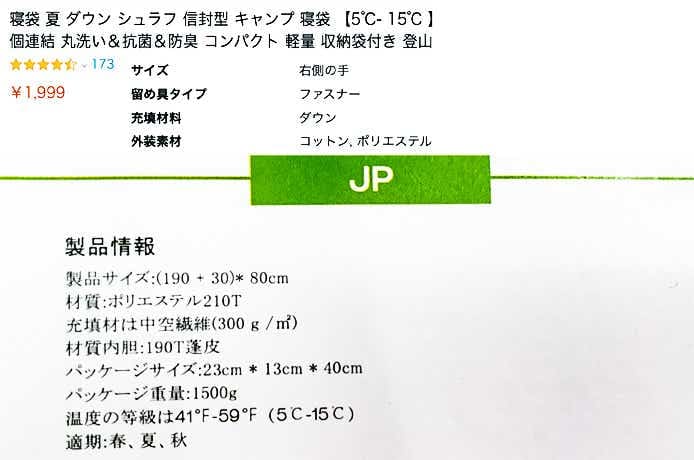 安すぎるダウンシュラフに要注意!