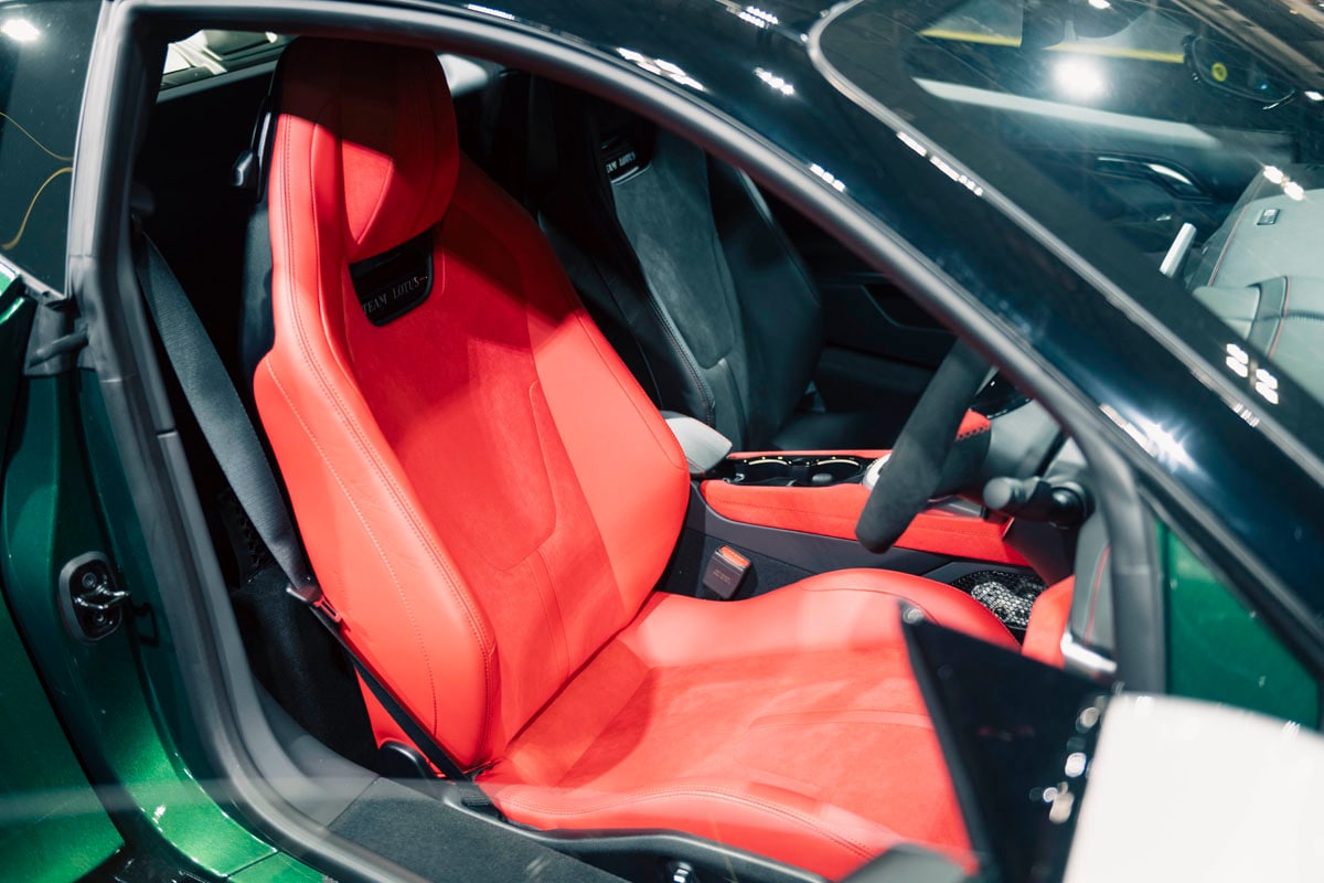 インテリアには、限定60台の証としてシリアルナンバープレートを装着。2シーターのキャビンはドライバーを主役とする設計で、包み込むような専用トリムデザインを採用している。スポーツシートは12ウェイ電動調整式で、クラークのレーシングシートを再現した鮮烈なレッドのアルカンターラとレッドレザーの表皮を使用している。
