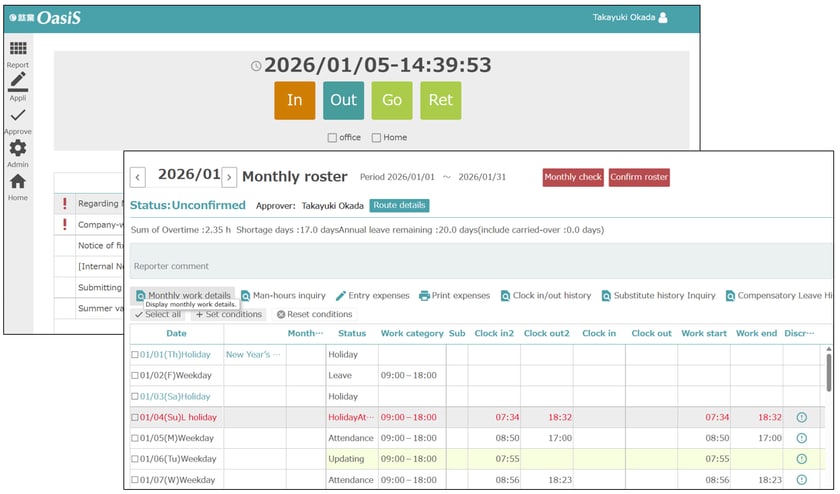 「e-就業OasiS」が提供する強化された英語表示機能は、外国人スタッフの増加する現代の企業環境に対応した勤怠管理システムです。これにより、各従業員の働く環境や利用シーンに合わせた柔軟な勤怠管理が可能となり、ストレスの少ない運用を実現します。また、直観的なUIにより、教育コストやサポート工数の削減にも貢献します。関連リンク:https://www.nds-tyo.co.jp/e-oasis/