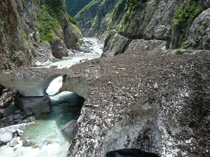 この付近には雪渓の道もあるので、不安な場合はアイゼンを持っていくのがおすすめです。雪渓を踏み抜いて思わぬ重大事故を招くこともあるので、川や端の方には行かないようにしましょう。