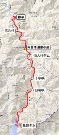このルートは黒部峡谷の中心部に位置し、非常に狭い崖沿いの道を長時間かけて歩くことから経験を積んだ上級者向けのルートとして知られています。