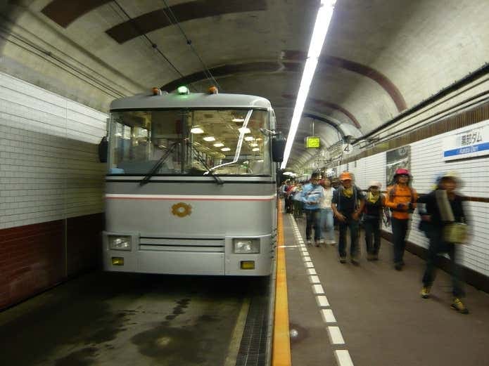 出発地点となるのは立山黒部アルペンルートのバスの黒部ダム駅。長野県側からのアクセスの場合は、扇沢駅から電気バスに乗って黒部ダムで下車後、トンネルを通って峡谷側におります。富山県側からアクセスする場合は室堂からバス~ロープウェイ~ケーブルカーを乗り継いで黒部湖から歩いて向かいます。