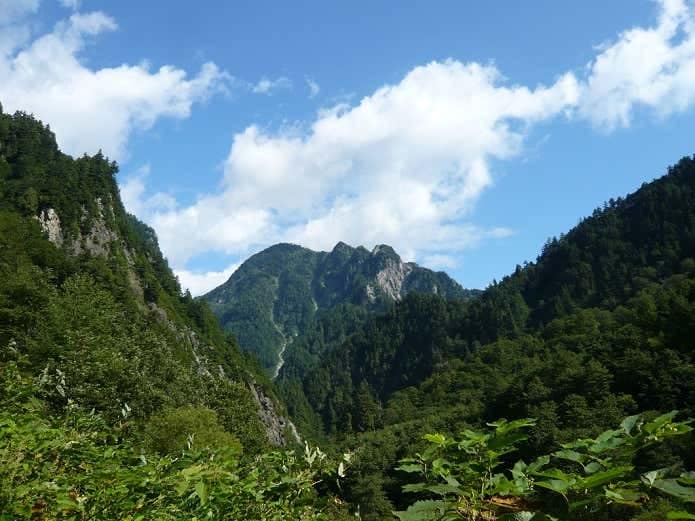 志合谷をすぎて欅平まで近くなると対岸に見えてくるのが、堂々とした奥鐘山。奥鐘山の西壁はクライマーから「黒部の怪人」と呼ばれており黒部三大岩壁のひとつにも数えられています。