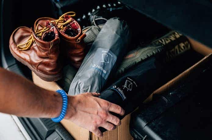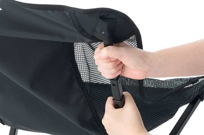ヘリノックス「チェアゼロ」の重量はわずか490g。ペットボトル1本分に満たない超軽量チェアです。リュックに無理なく収まるほどコンパクトに収納できます。