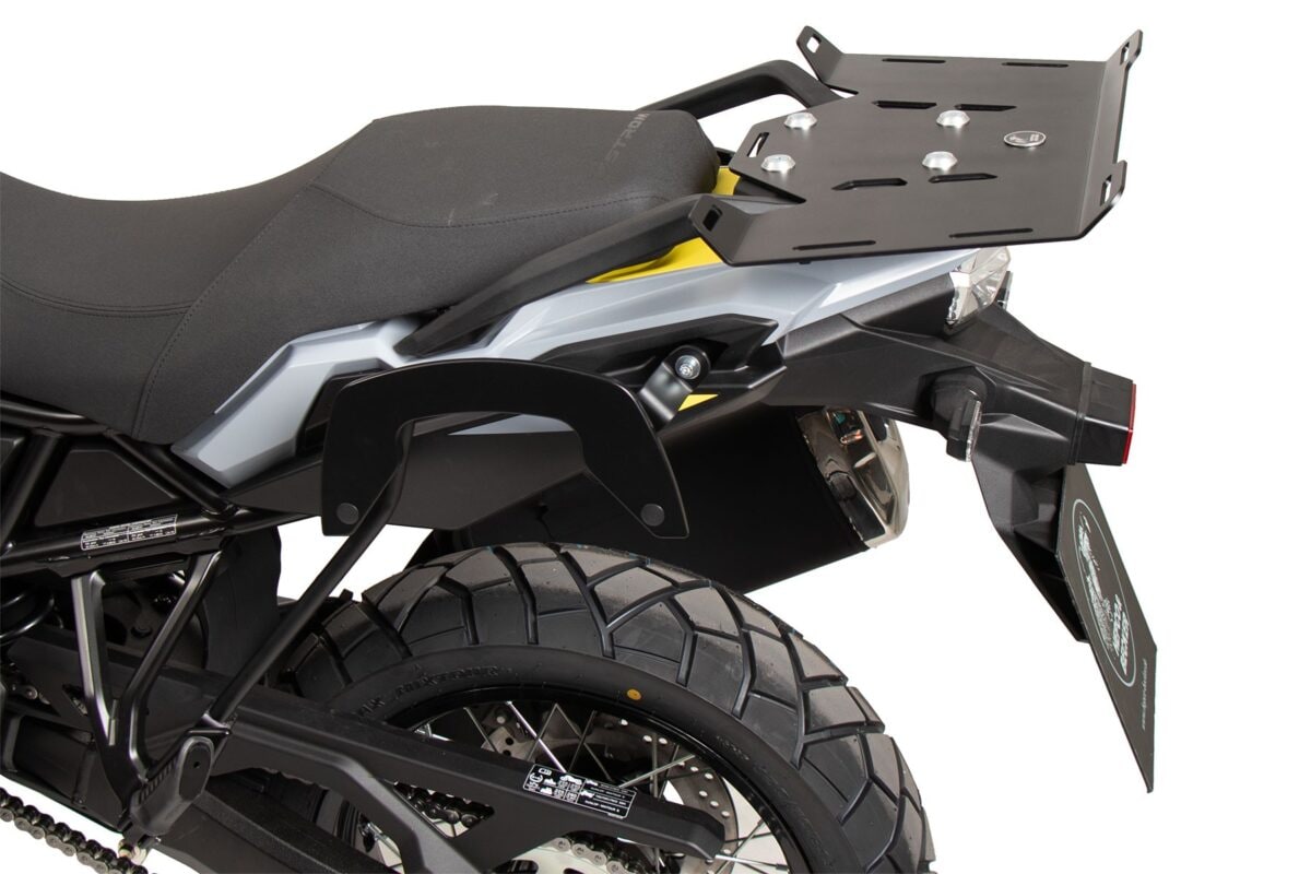 トップケースキャリアEASYラック ブラックV-Strom800 24 トップケースを取付けるためのキャリア。トップケースを積載していない時はガイド部分を折り畳みフラットに出来るので、ケースを装着しないときもスタイリッシュです。