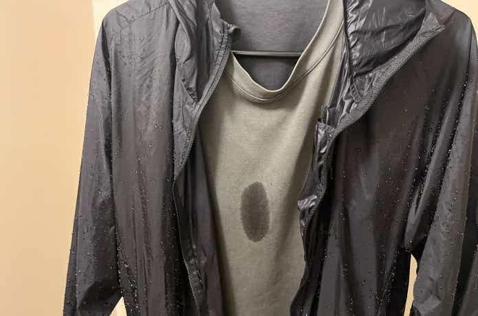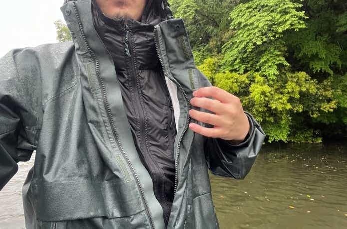 アウターにアウトドアブランドのレインウェア、ミドラーに『はっ水パーカー』、インナーにシャツの組み合わせでしたが、結果的には効果を感じられました。