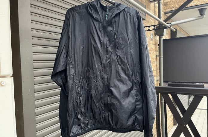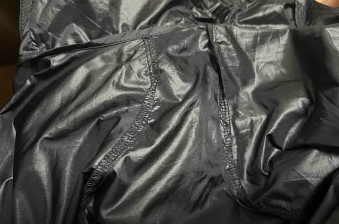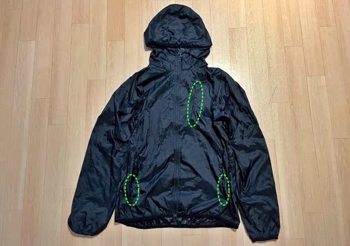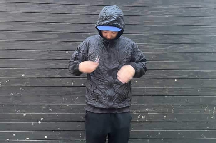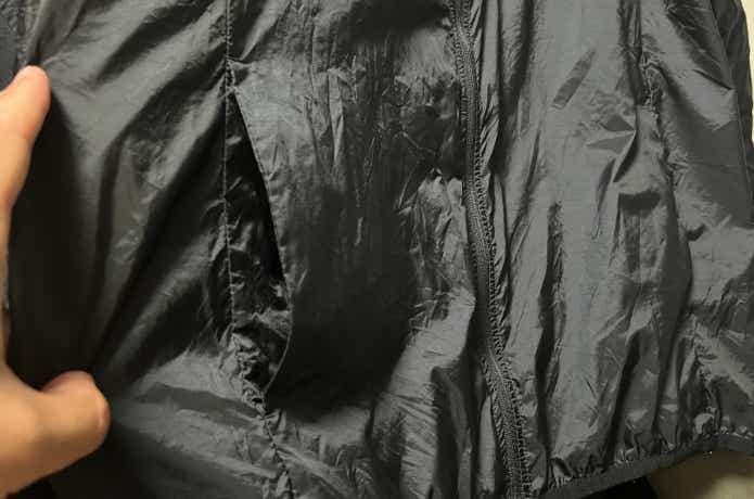 防風というわけではありませんが、ある程度の風の侵入も防いでくれるので、超軽量ウインドブレーカーとしても十分に役立ってくれます。